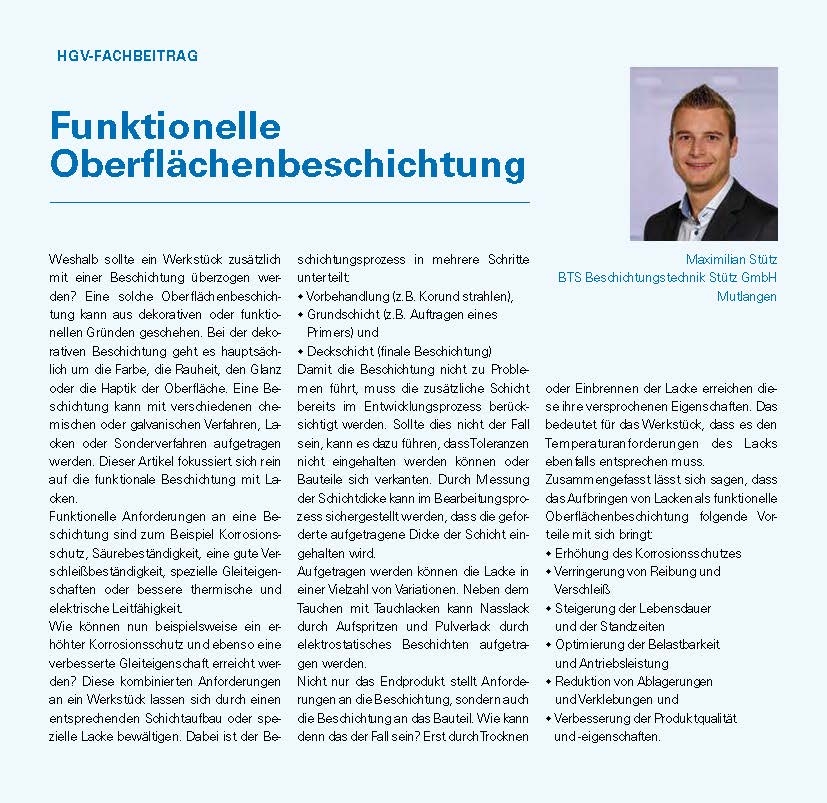 BTS Beschichtungstechnik Stütz GmbH Wetzgauer Str. 29 / 1 73557 Mutlangen Tel. 07171 71355 Fax 07171 979516 Mail btsstuetz@aol.com www.bts-stuetz-gmbh.de Ansprechpartnerin: Sabine Stütz |